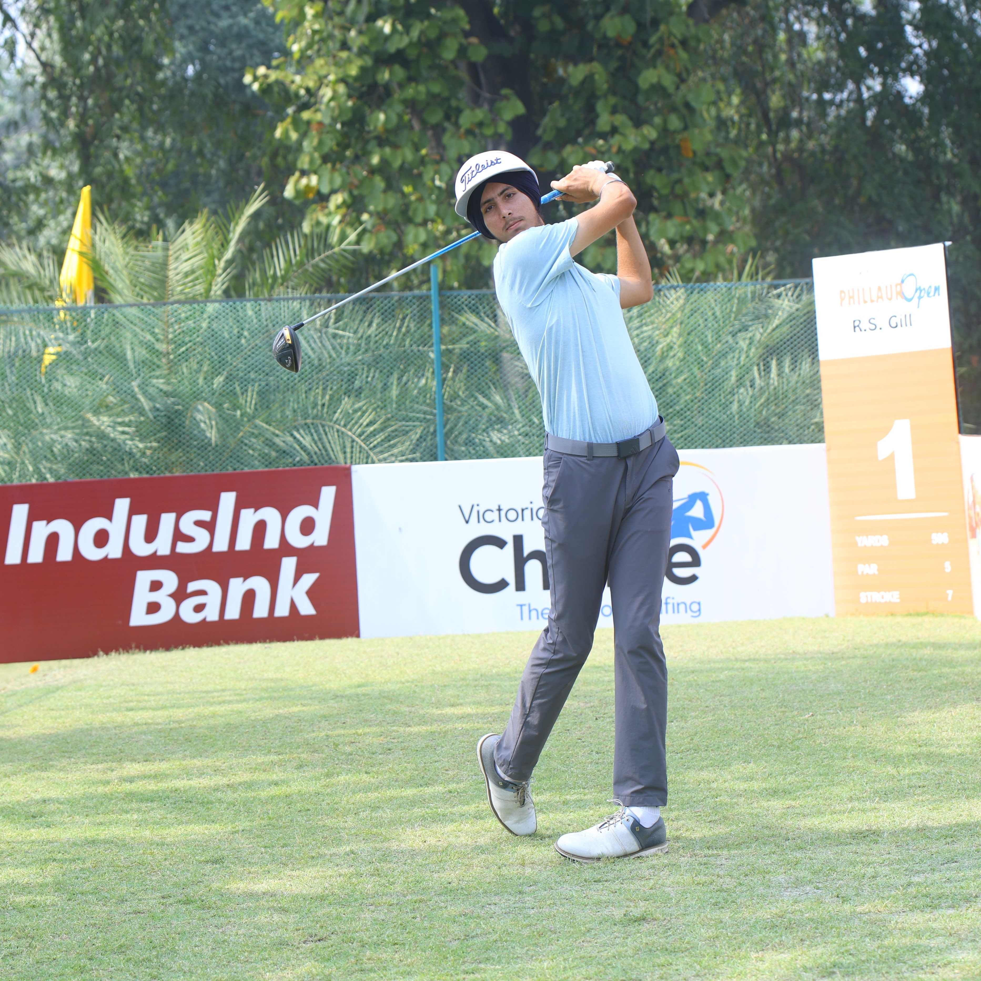 The young Chandigarh trio of twin brothers Bishmadpal Singh and Brashwarpal Singh as well as Manjot Singh shot scores of five-under 66 to take the joint lead in round one of the PGTI NEXGEN’s Phillaur Open presented by R S Gill being played at the Ranjitgarh Golf Club in Phillaur, Punjab.