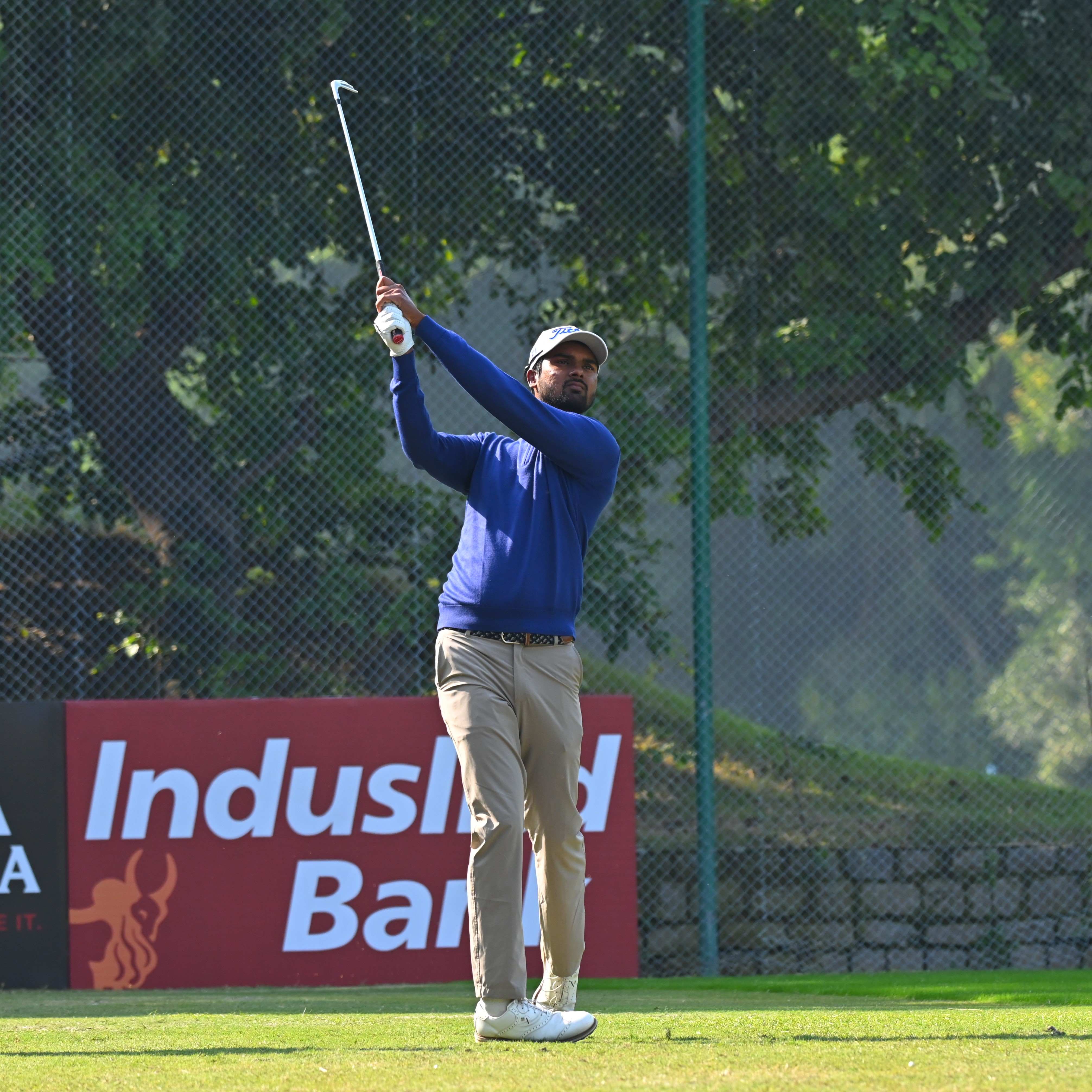 Dhruv Sheoran (68), PGTI Order of Merit leader Yuvraj Sandhu (69), Viraj Madappa (69) and Rashid Khan (70) were all tied third at two-under 142.