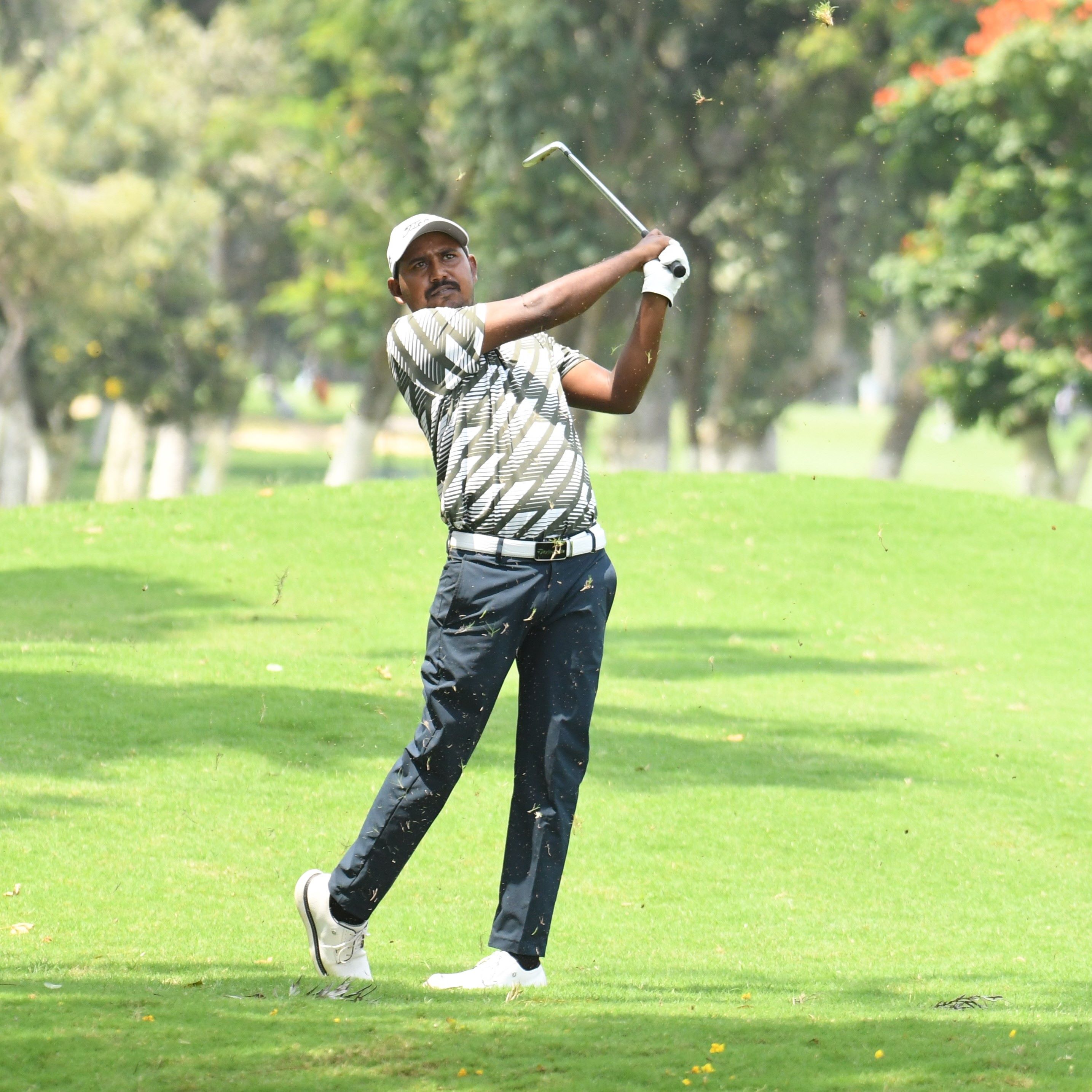 The 44-year-old N Thangaraja, currently third on the PGTI Order of Merit with a win and a runner-up finish to his credit over the last three events, began the day on a solid note sinking a couple of 20-footers for birdies on the first and third holes. Thangaraja, a two-time winner this season, had a minor setback when he three-putted for bogey on the fourth hole. Thanga’s top-class hitting helped him collect four more birdies thereafter.