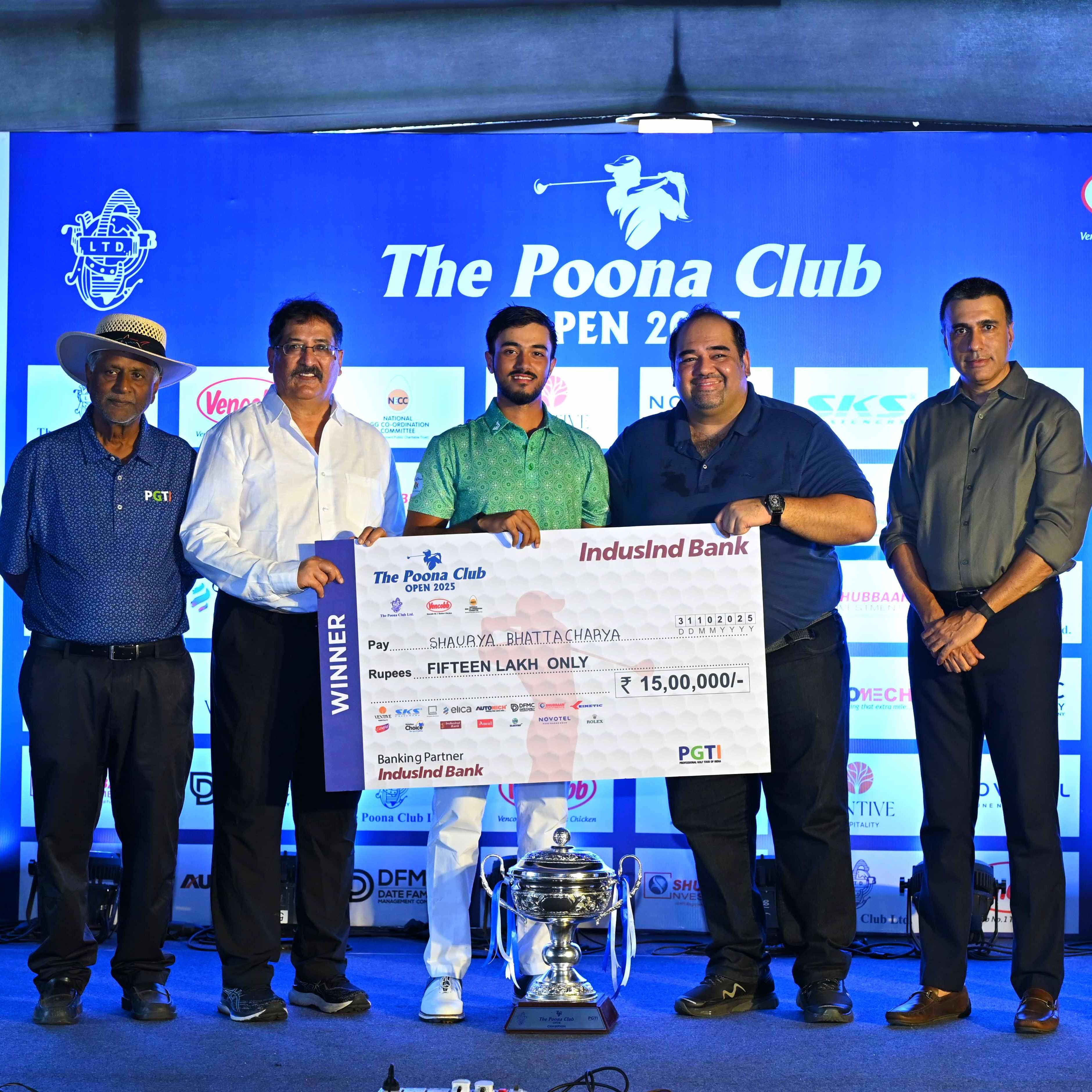 Shaurya Bhattacharya, who trailed by two shots after round three, saved his best for the last as he upstaged the pre-tournament favourite Yuvraj Sandhu and snatched victory in a playoff at The Poona Club Open 2025, an INR 1 crore event, played at the Poona Club Golf Course.