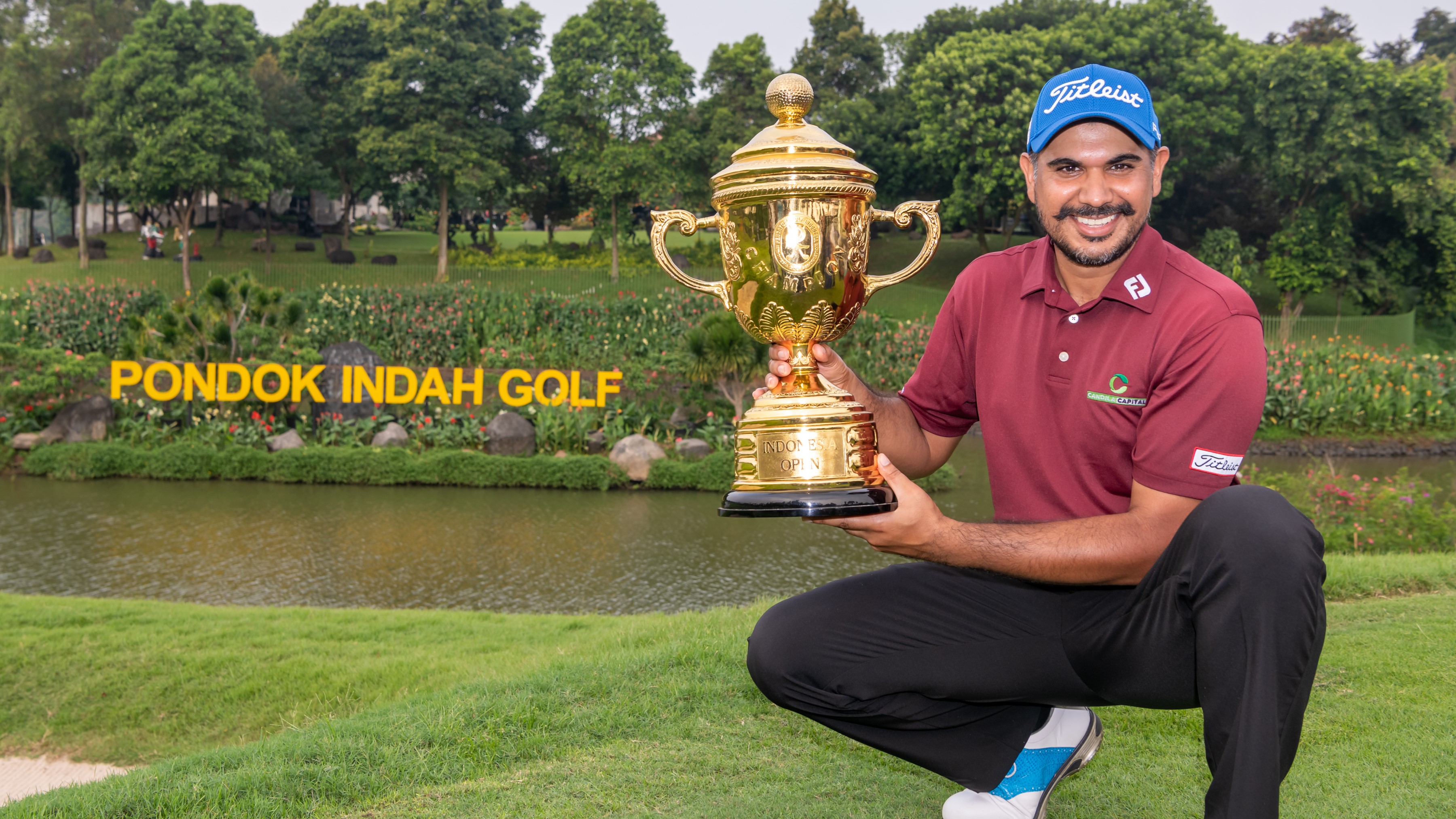 Gaganjeet Bhullar poses with the Mandiri Indonesia Open trophy; Gaganjeet's 4th win in his happy hunting ground Indonesia and his 2nd win at the Pondok Indah Golf Course lifted him from 24th to 10th position in the Asian Tour Order of Merit (Picture: Asian Tour)