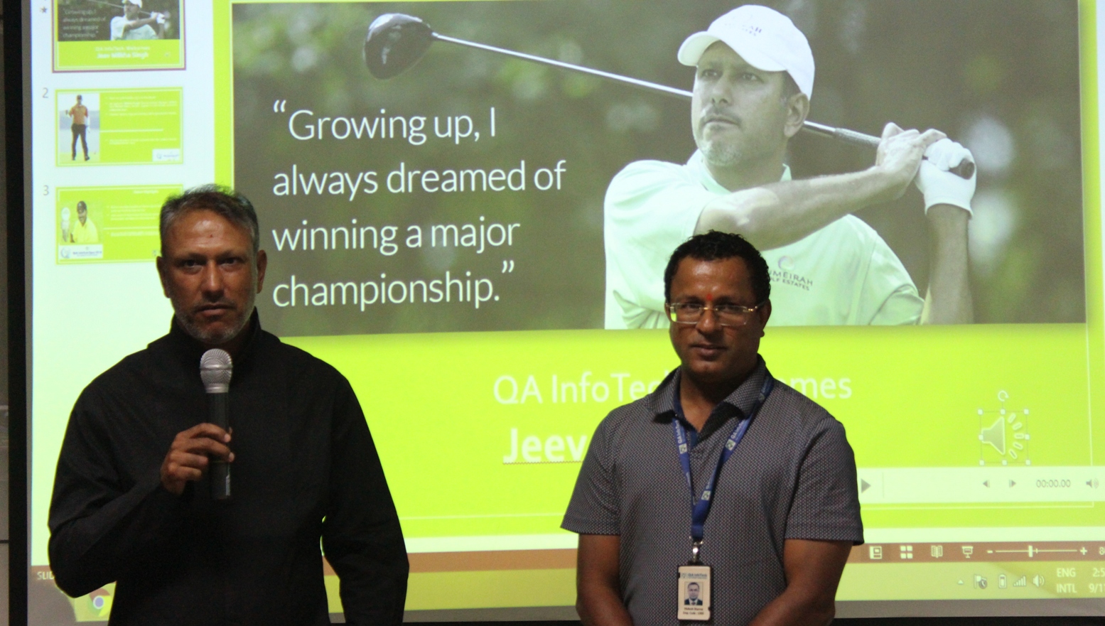 QA InfoTech Open: Indian golfing legend Jeev Milkha Singh interacted with Mr. Mukesh Sharma, Founder & MD, QA Infotech (right) and over 200 employees from QA InfoTech during a Q & A session on Tuesday