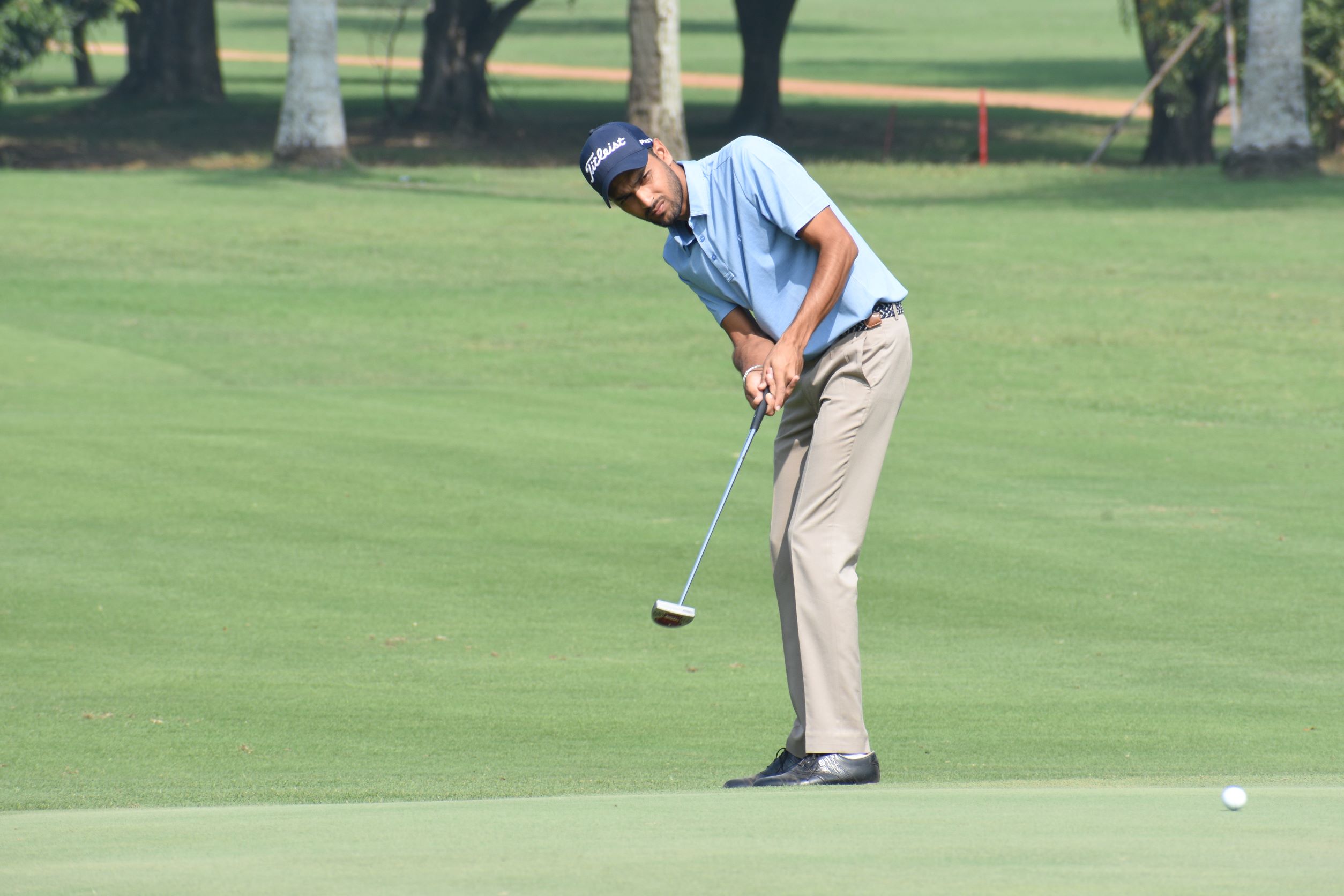 Kshitij Naveed Kaul had an early setback when he bogeyed the third. The ever-smiling Kaul, who hardly displays any emotions on the course, then made some outstanding recoveries from the rough to claim birdies on the fourth and fifth and stretch his lead to a comfortable three shots.