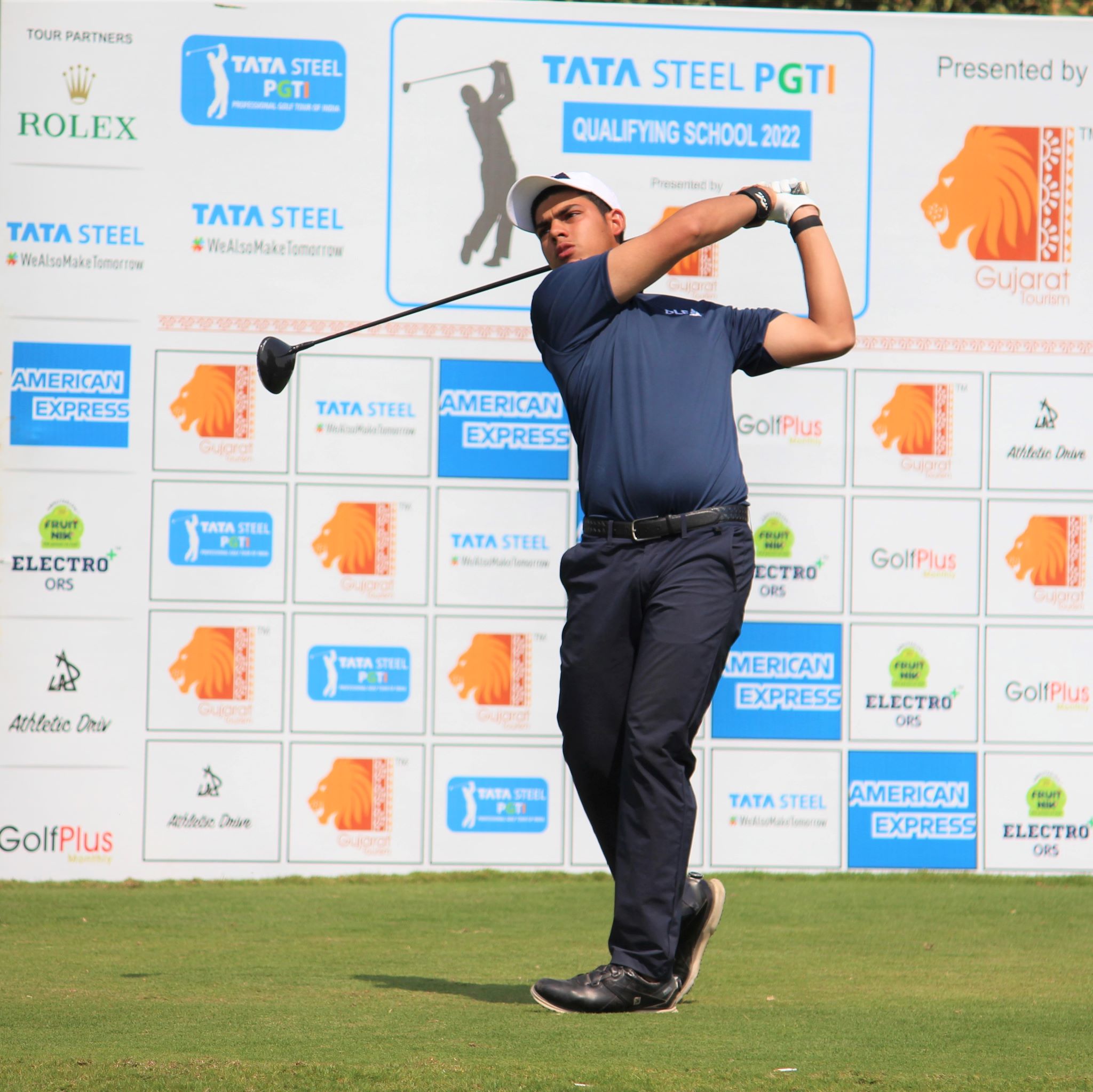 Varun Parikh (67-69), playing in his home town Ahmedabad, landed two eagles during his second round of three-under 69 to move up one spot into a two-shot lead at eight-under 136 in the Final Qualifying Stage of the TATA Steel PGTI Qualifying School 2022 presented by Gujarat Tourism being played at the Kalhaar Blues & Greens Golf Club.