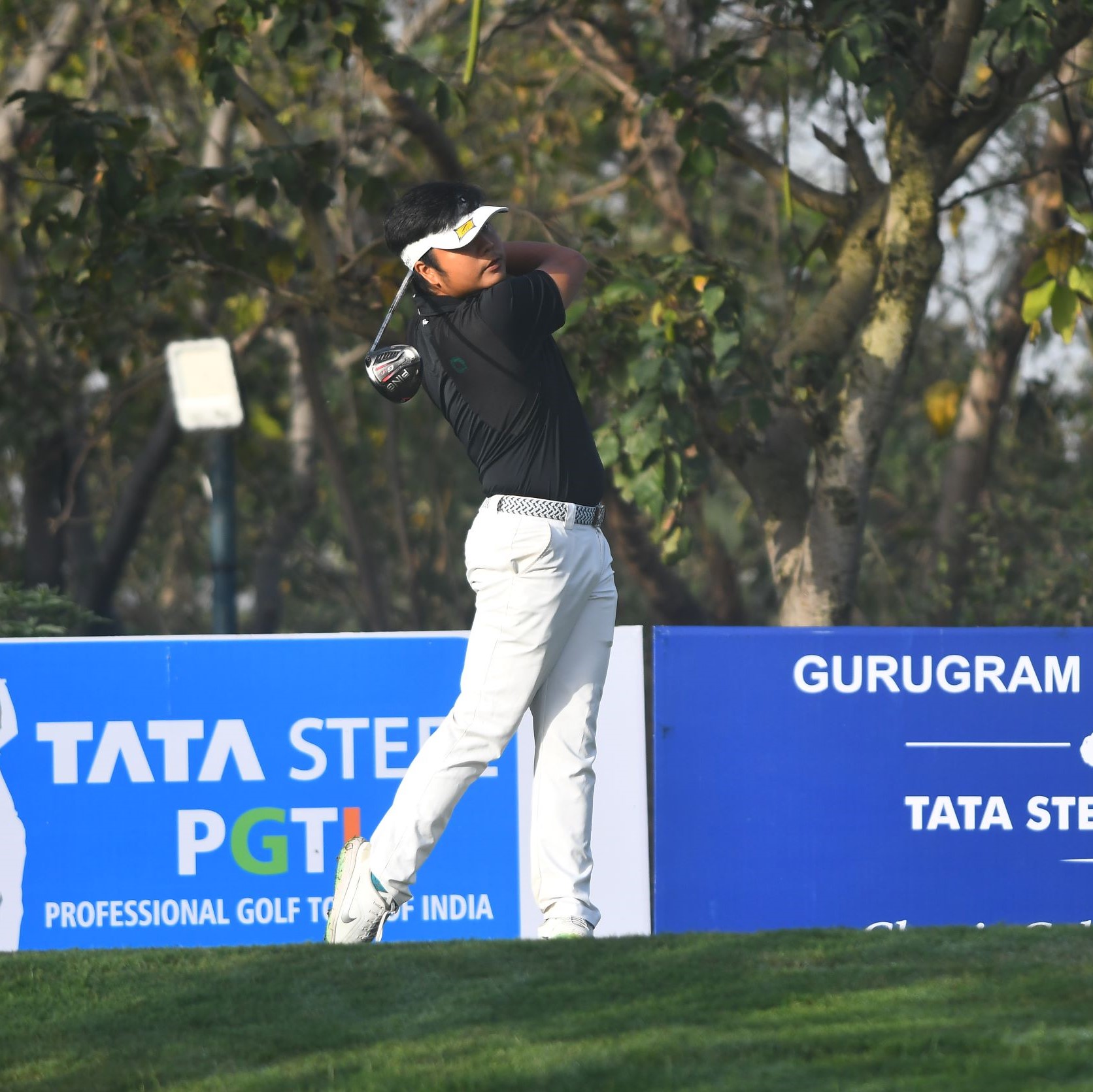 Tapy Ghai, playing at his home course, had a run of five consecutive birdies from the third to the seventh. He then had a double-bogey on the 12th but bounced back well with two birdies thereafter.