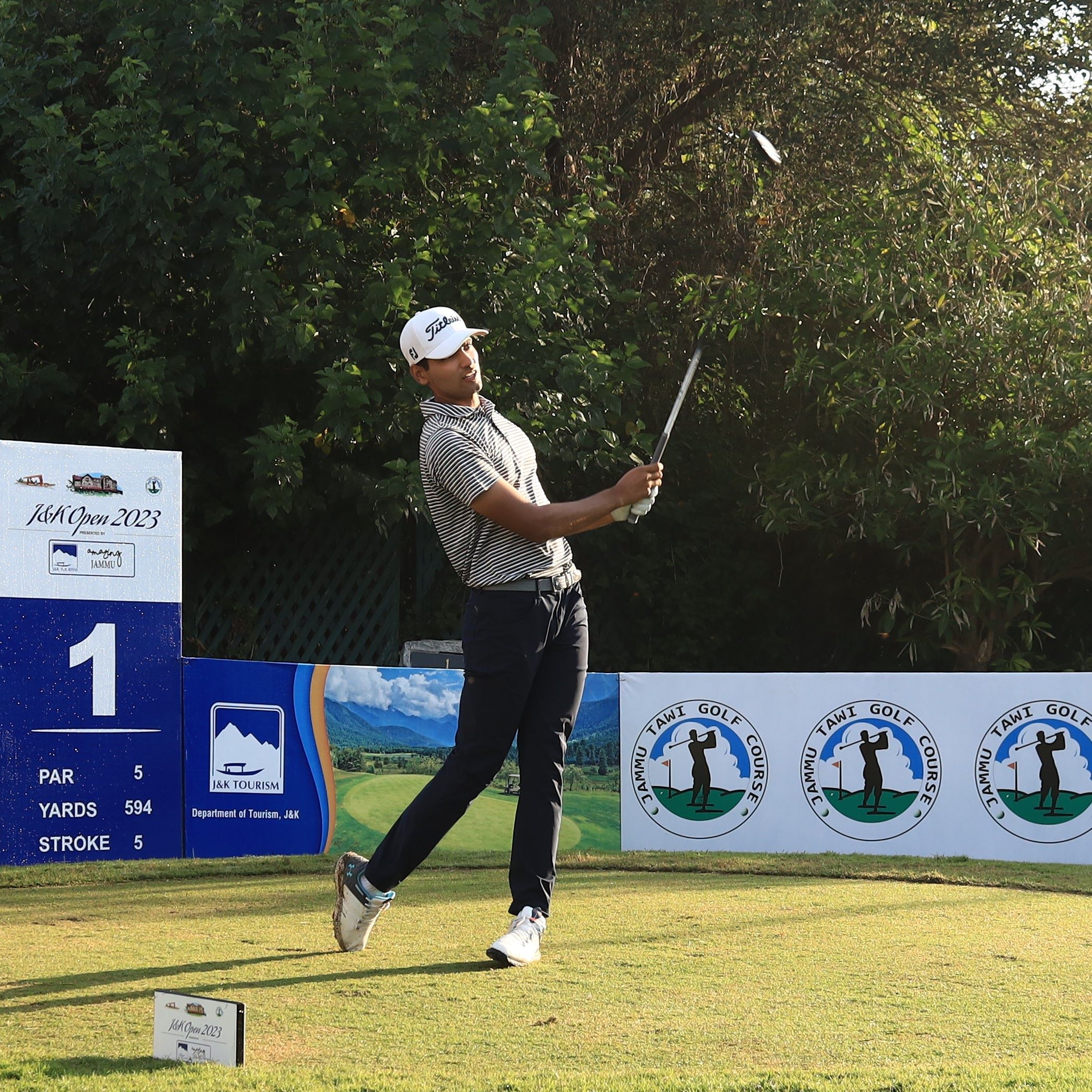 Chandigarh’s Akshay Sharma and Karan Pratap Singh of Faridabad fired scores of four-under 68 to hold the joint lead in round one of the J&K Open 2023 presented by J&K Tourism being played at the Jammu Tawi Golf Course (JTGC).