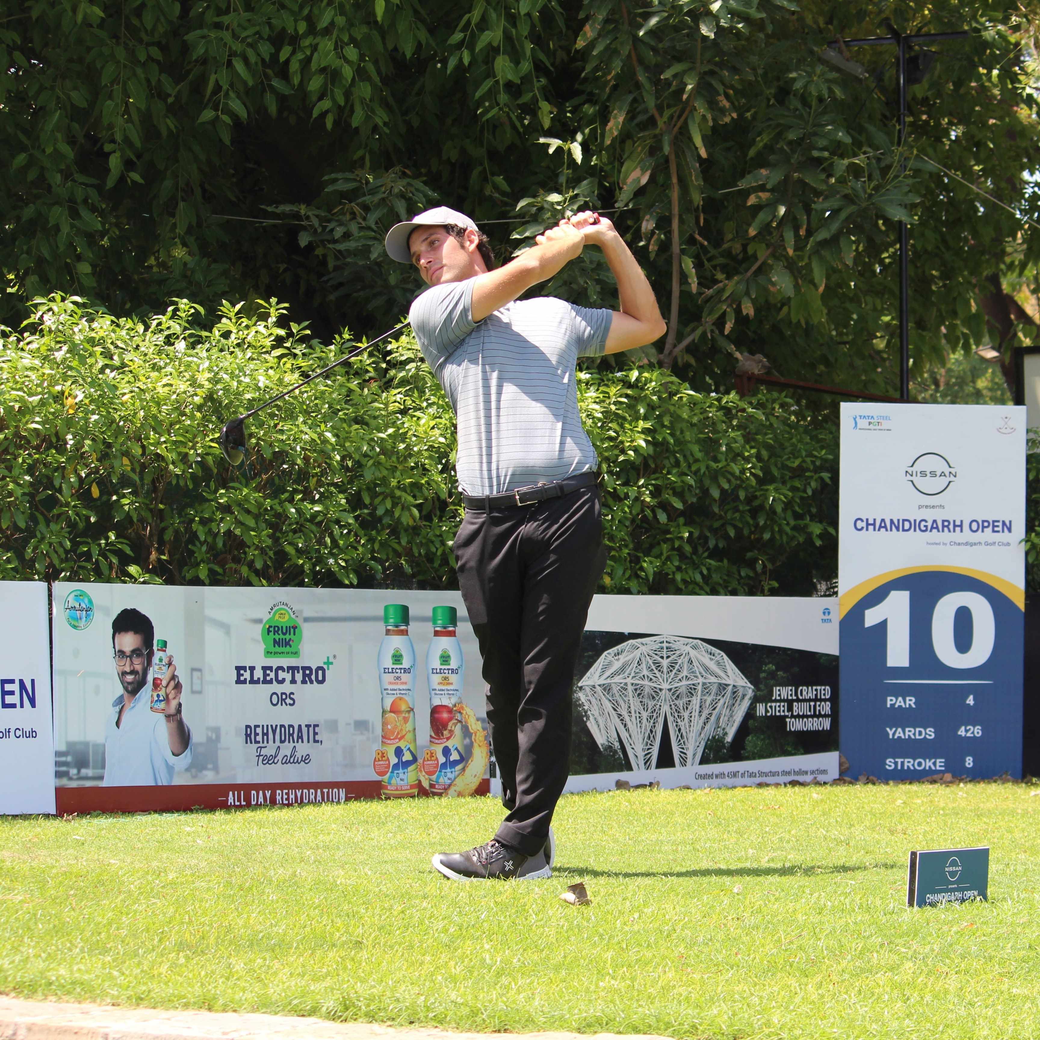Tricity lad Angad Cheema carded a five-under 67 to move into the joint lead along with Mysuru’s Yashas Chandra (66) and Italian rookie Michele Ortolani (69) at a total of 11-under 133 in round two of the INR 1 crore Nissan presents Chandigarh Open 2024 hosted by Chandigarh Golf Club.
