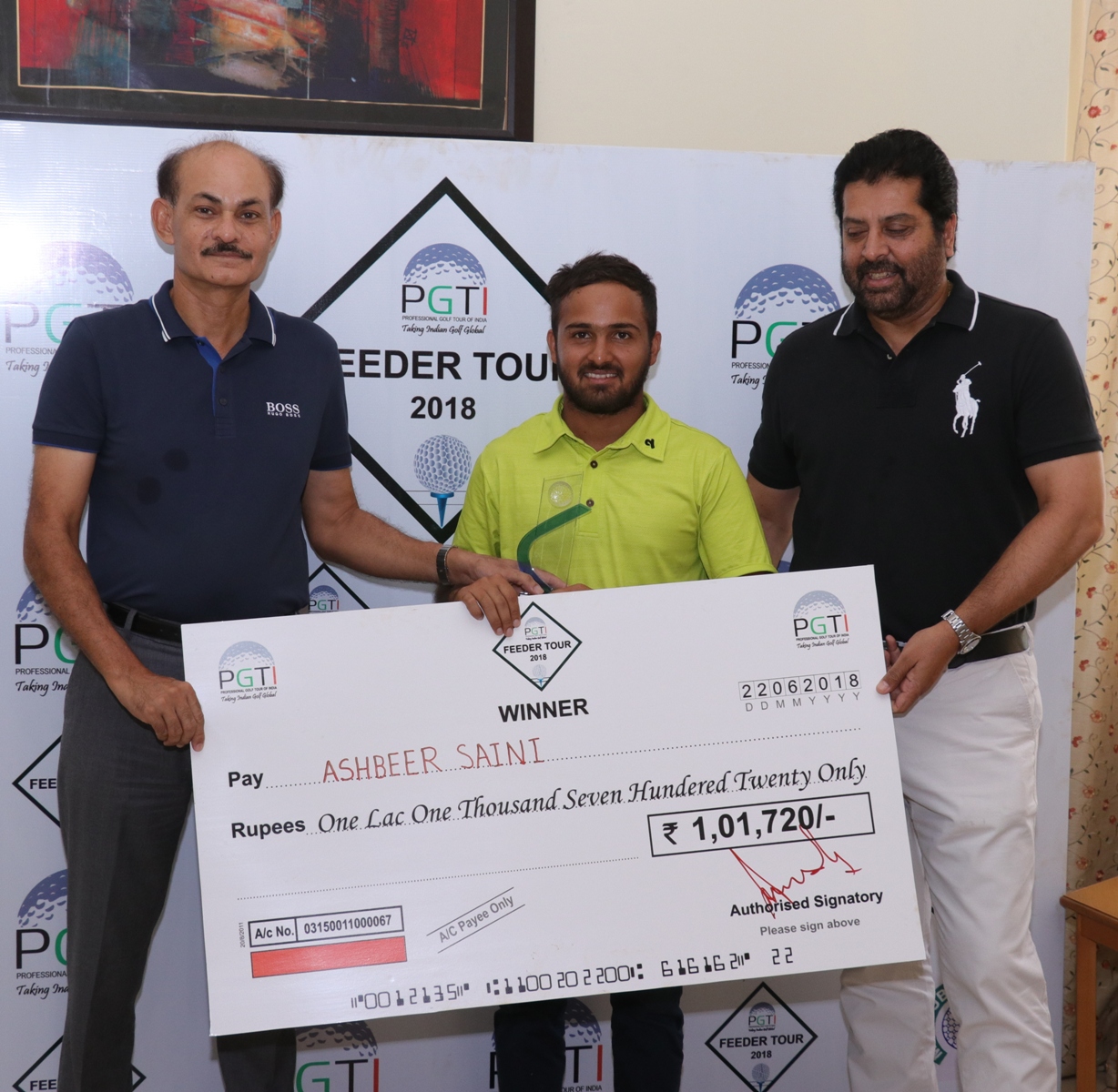 Kapurthala lad Ashbeer Saini’s career got a new lease of life after he bagged his maiden professional title at the PGTI Feeder Tour event at the Madhuban Meadows Golf Club in Karnal, Haryana. The 24-year-old Saini, who returned a sedate one-over-71 in the final round, prevailed by three shots at nine-under-201 for a wire-to-wire victory.Delhiâ...Read MoreKarnal, Haryana, 21-06-2018