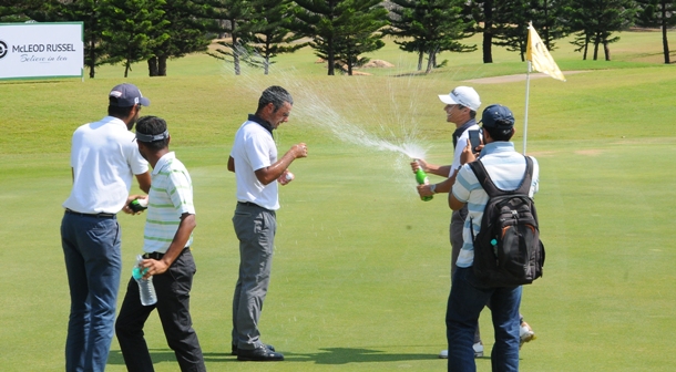 Players C'ship, Eagleton: The celebrations begin for Shubhankar, his 24-under-264 total matched Anirban Lahiri's PGTI record for the lowest tournament score