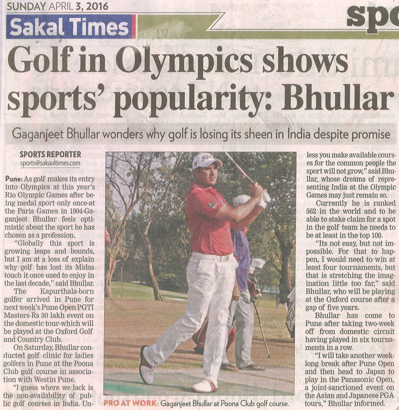 Sakal Times, Pune, 3-4-16