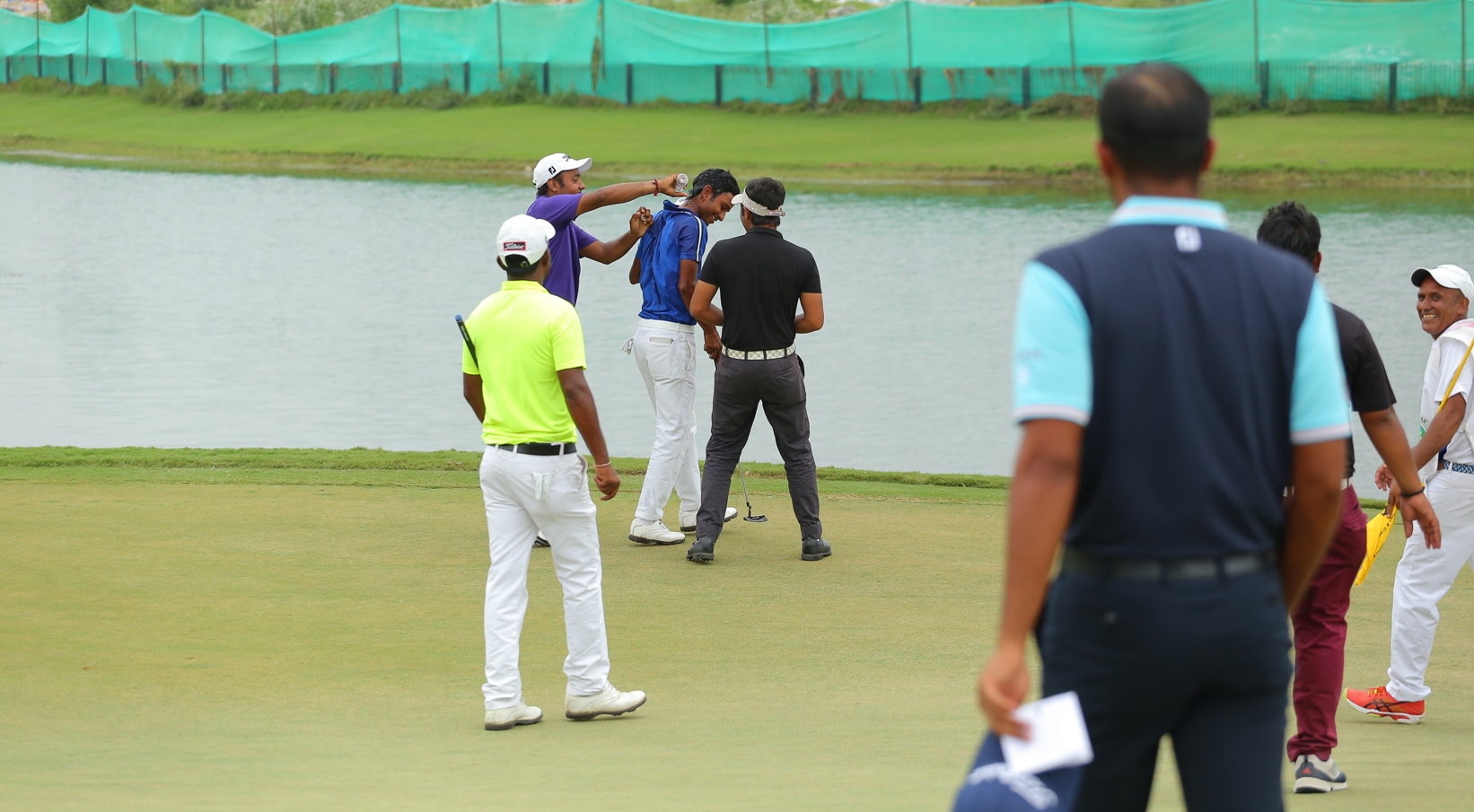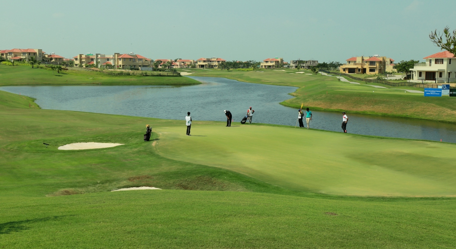 PGTI Ahmedabad Masters: A view of the action on the 12th green of the Kalhaar Blues & Greens