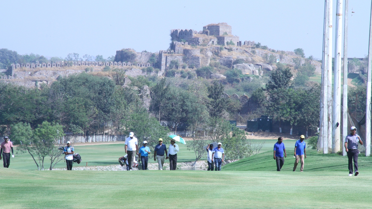Golconda Masters: The historical Golconda Fort is seen in the background as the final group approaches the 18th green during Round 3