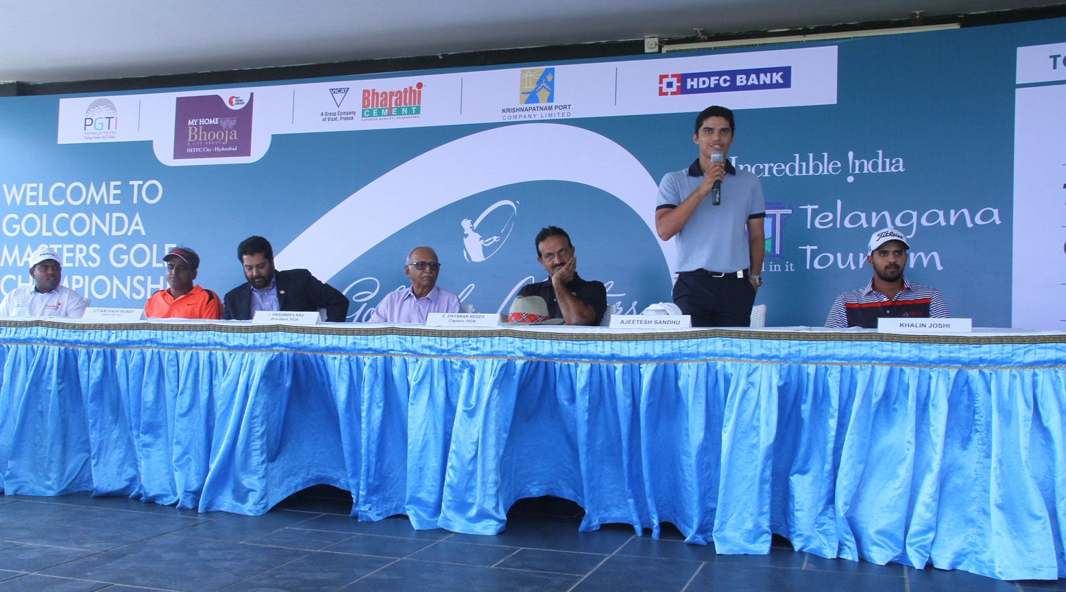 Golconda Masters: Defending champion Ajeetesh Sandhu addresses the gathering