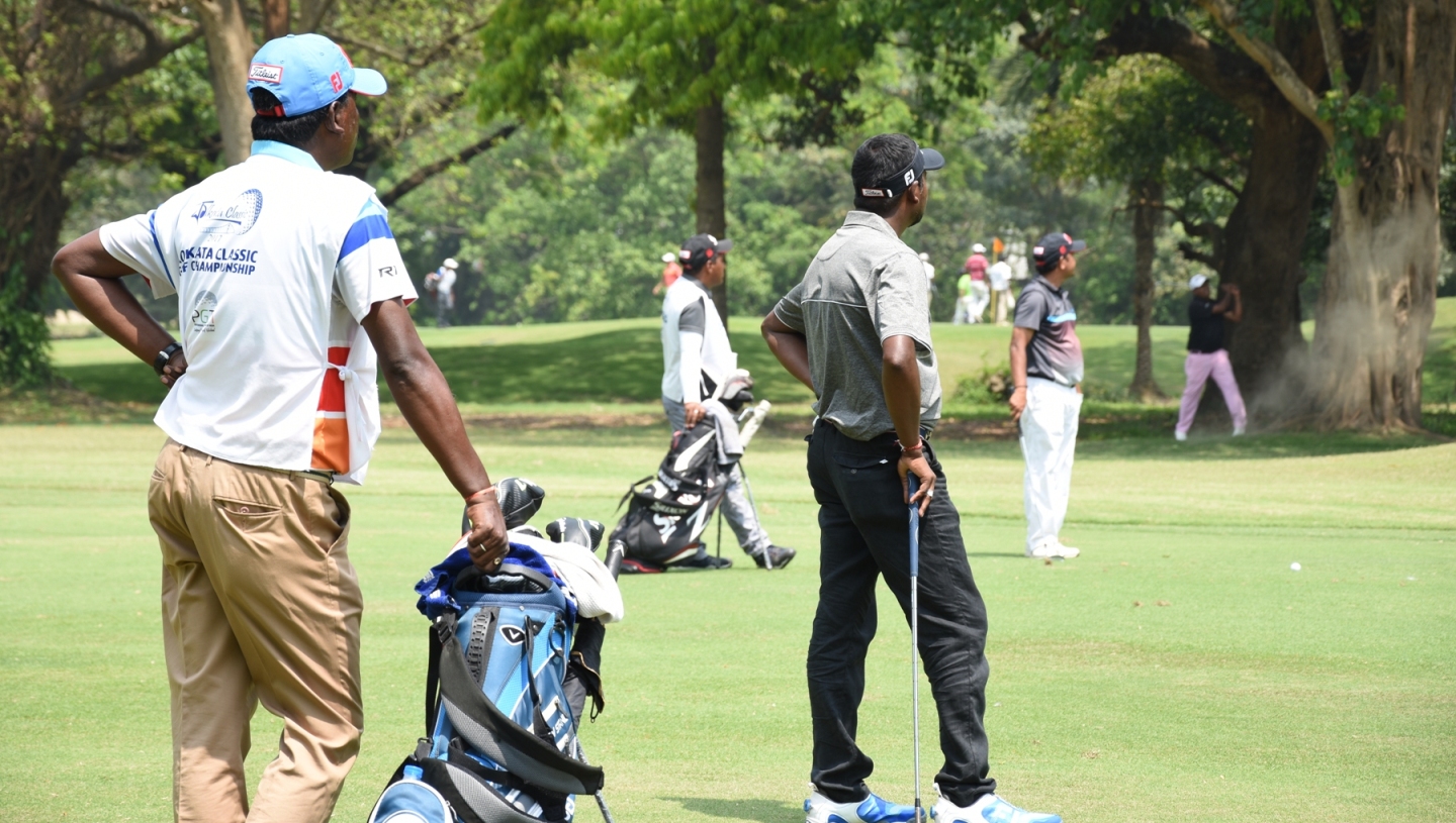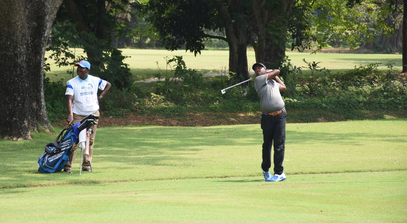 Kolkata Classic: Shankar and Shamim look on as Mukesh Kumar hits it out of the rough during the final round