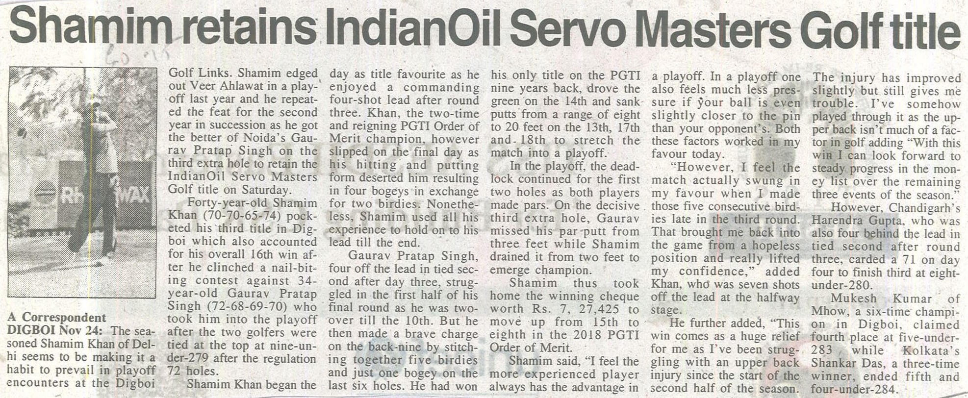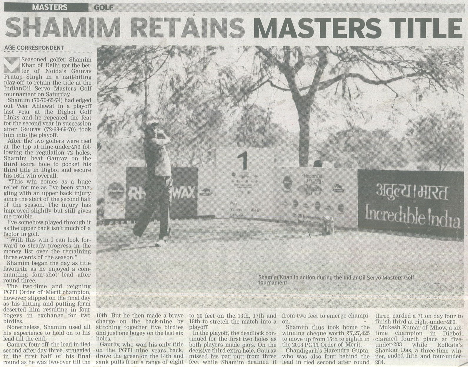 IndianOil Servo Masters Golf 2018