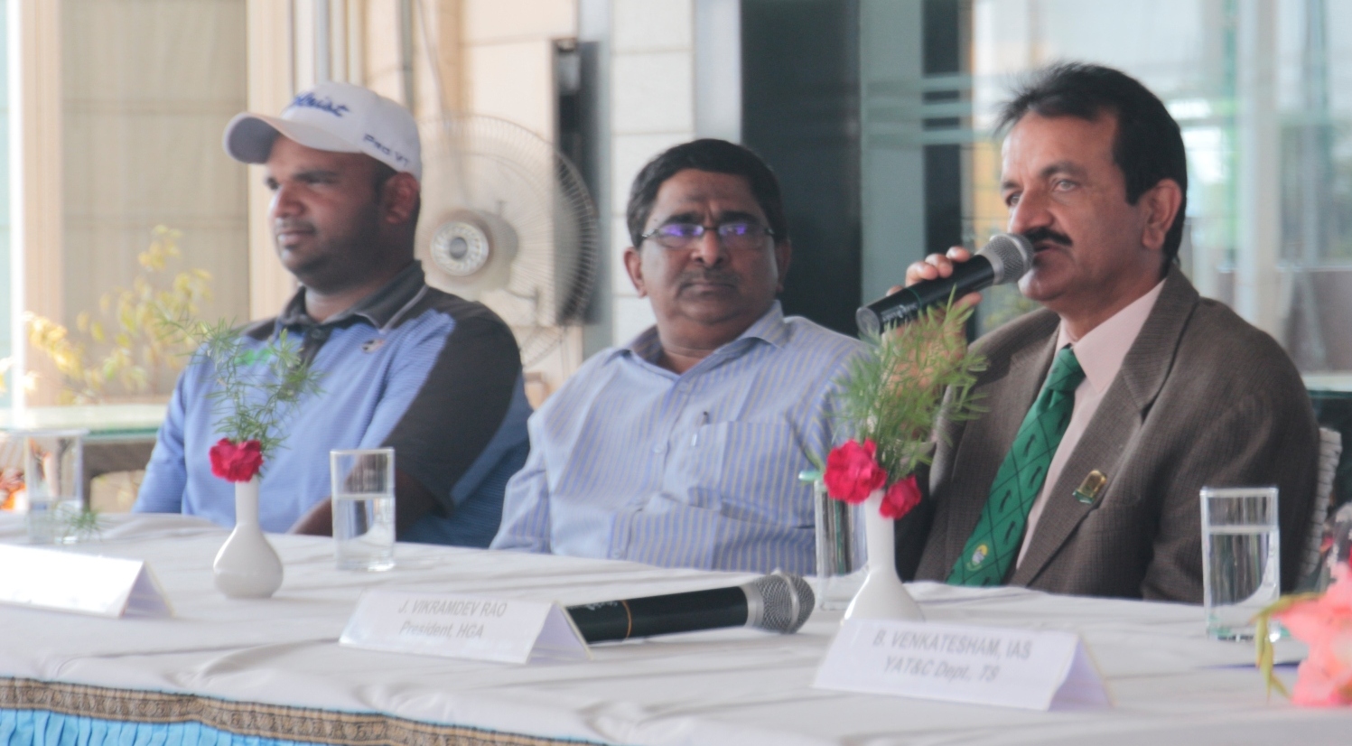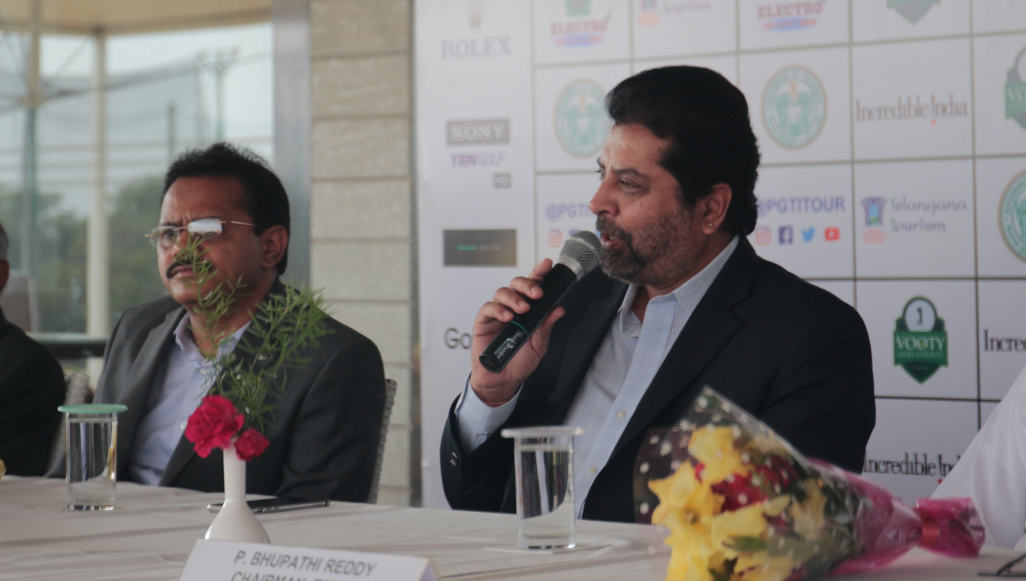 Golconda Masters: Reigning PGTI Order of Merit champion Khalin Joshi spoke about the challenges of playing at the HGA, seated next to him was Mr. Bhupati Reddy, Chairman, TSTDC