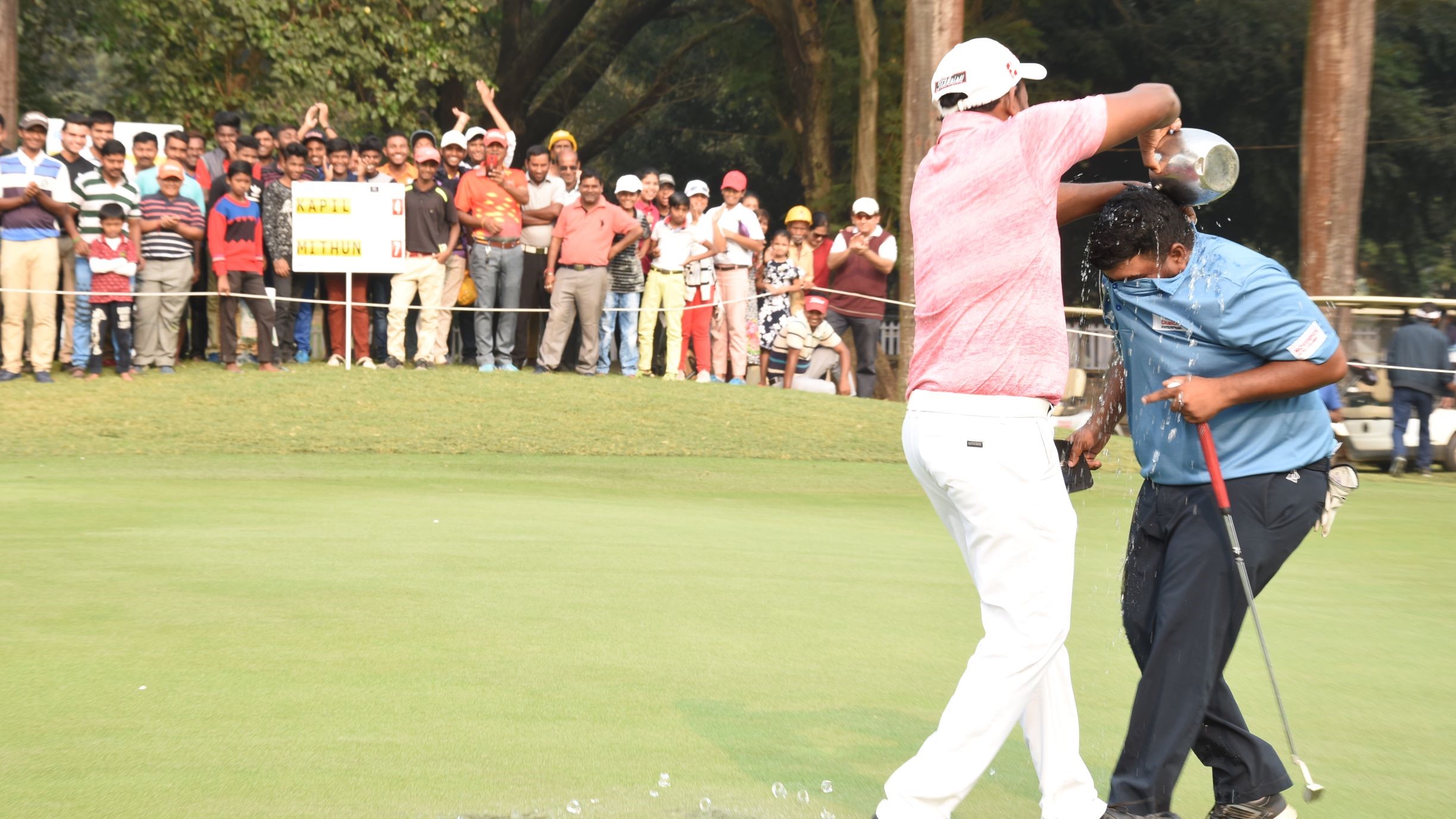 ICC RCGC Open: Mithun Perera celebrates his win with fellow Sri Lankan professional N Thangaraja