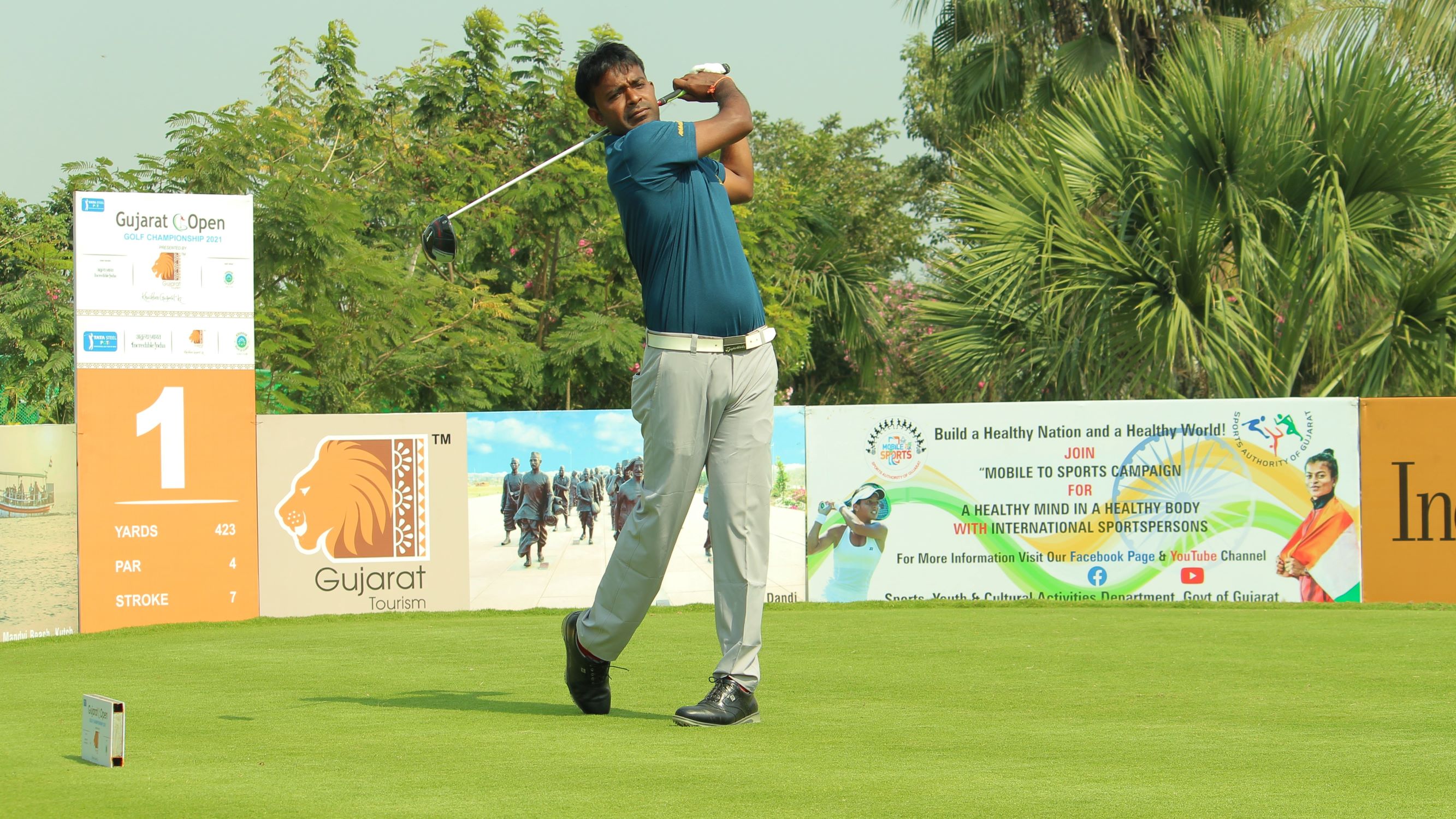 Gujarat Open Presented by Gujarat Tourism: SSP Chawrasia seen teeing off during the practice round of the Gujarat Open 2021, he is one of the leading names in the field this week