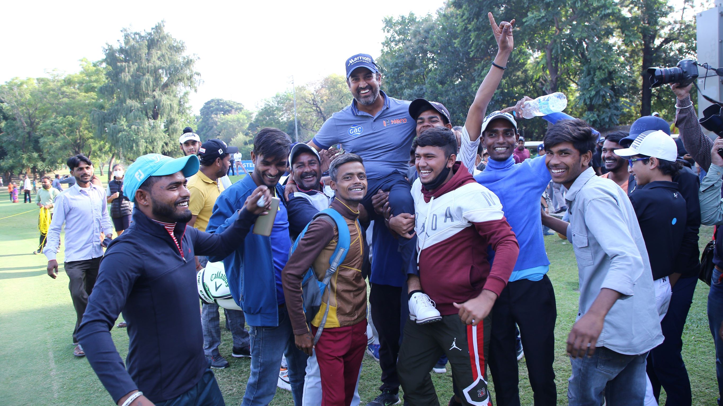 Jeev Milkha Singh Invtl 2021 Presented by TAKE Sports: The celebrations begin on the 18th green for Shiv Kapur