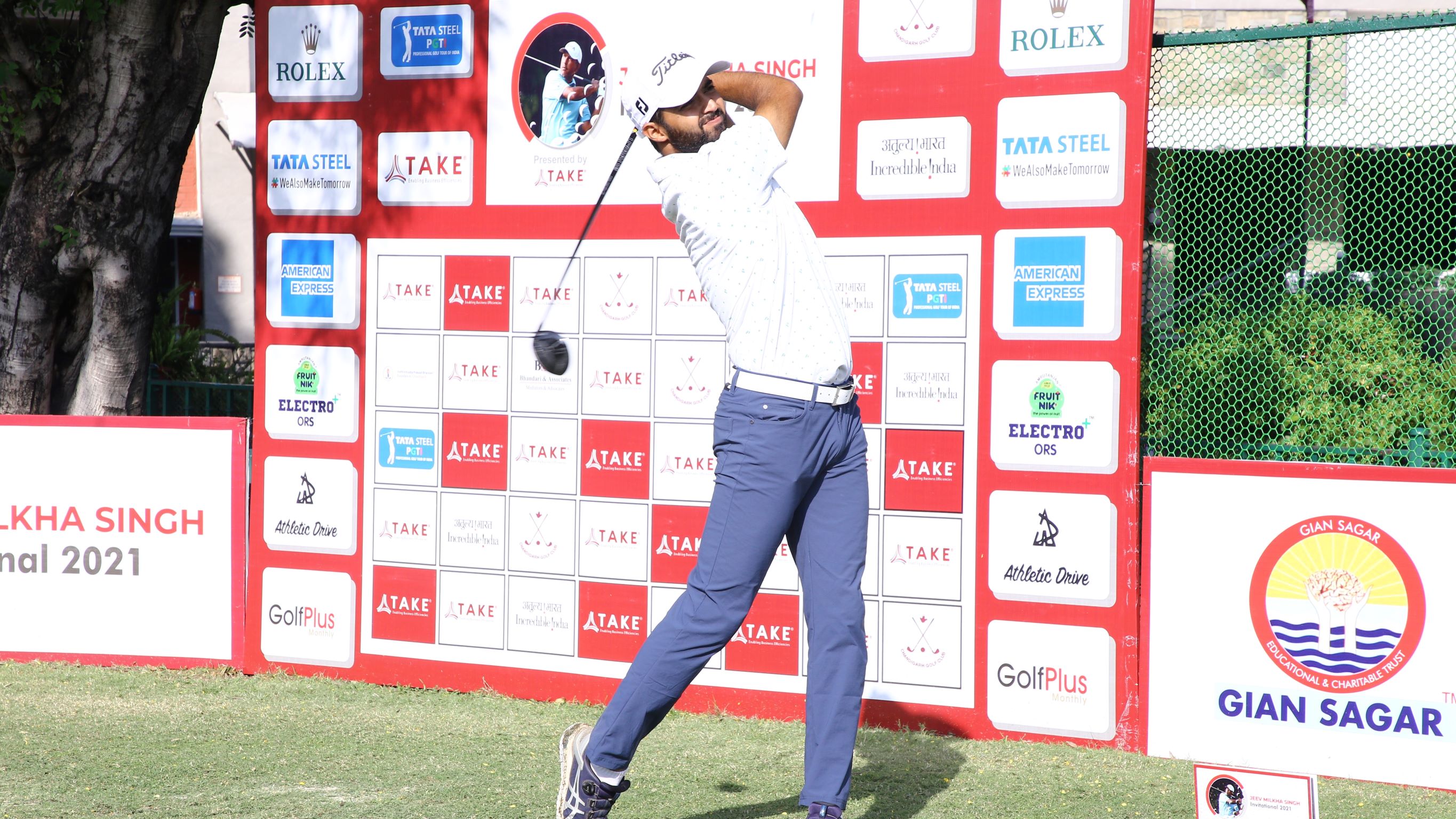 Jeev Milkha Singh Invtl 2021 Presented by TAKE Sports: Abhijit Singh Chadha, playing at his home course, too struck a 64 to be tied for the first round lead