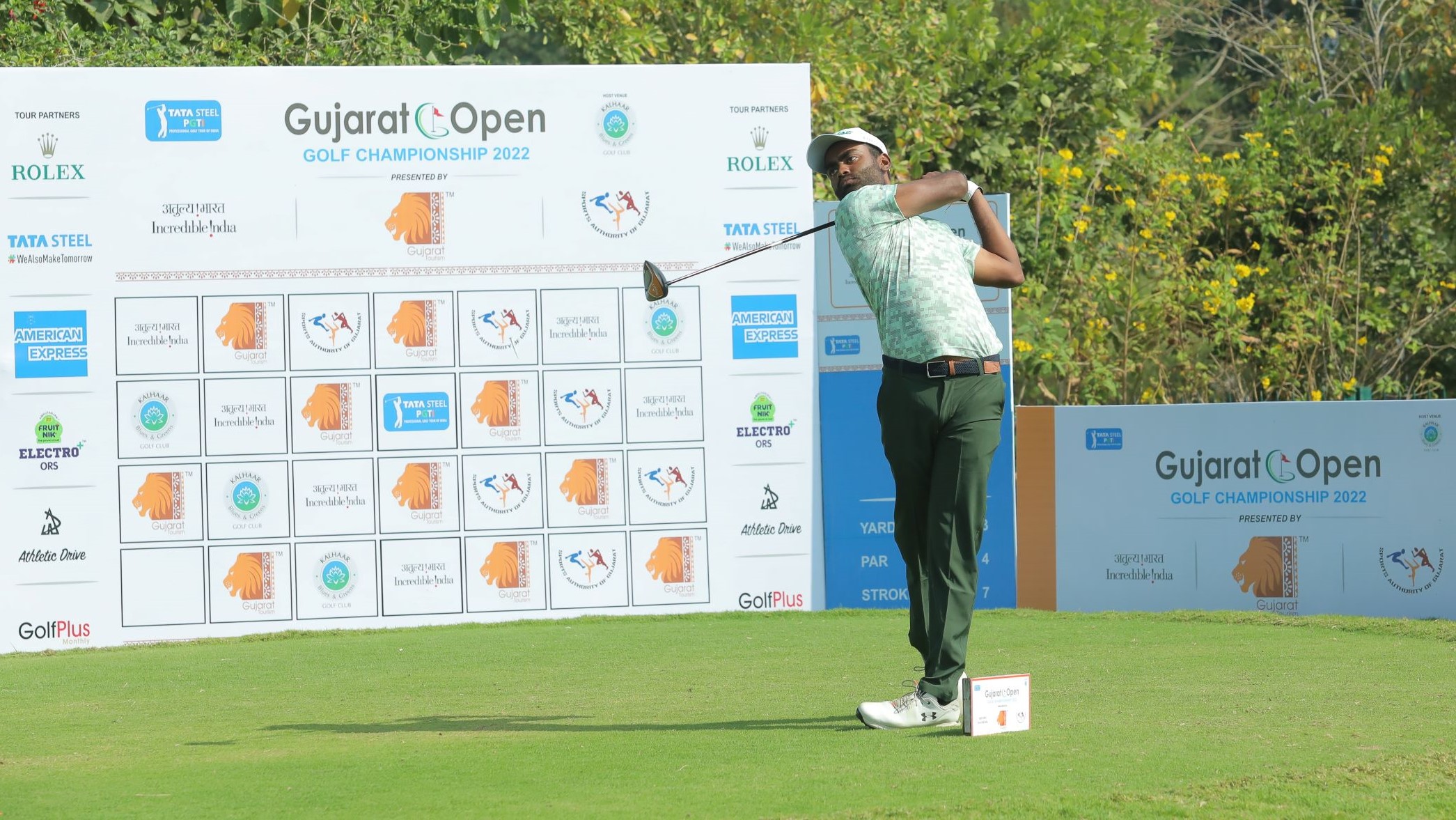Gujarat Open presented by Gujarat Tourism: TATA Steel PGTI tees off its 2022 season with the Gujarat Open from February 22; Qualifying School winner and local lad Varun Parikh (in the picture) is seen in action during the practice round