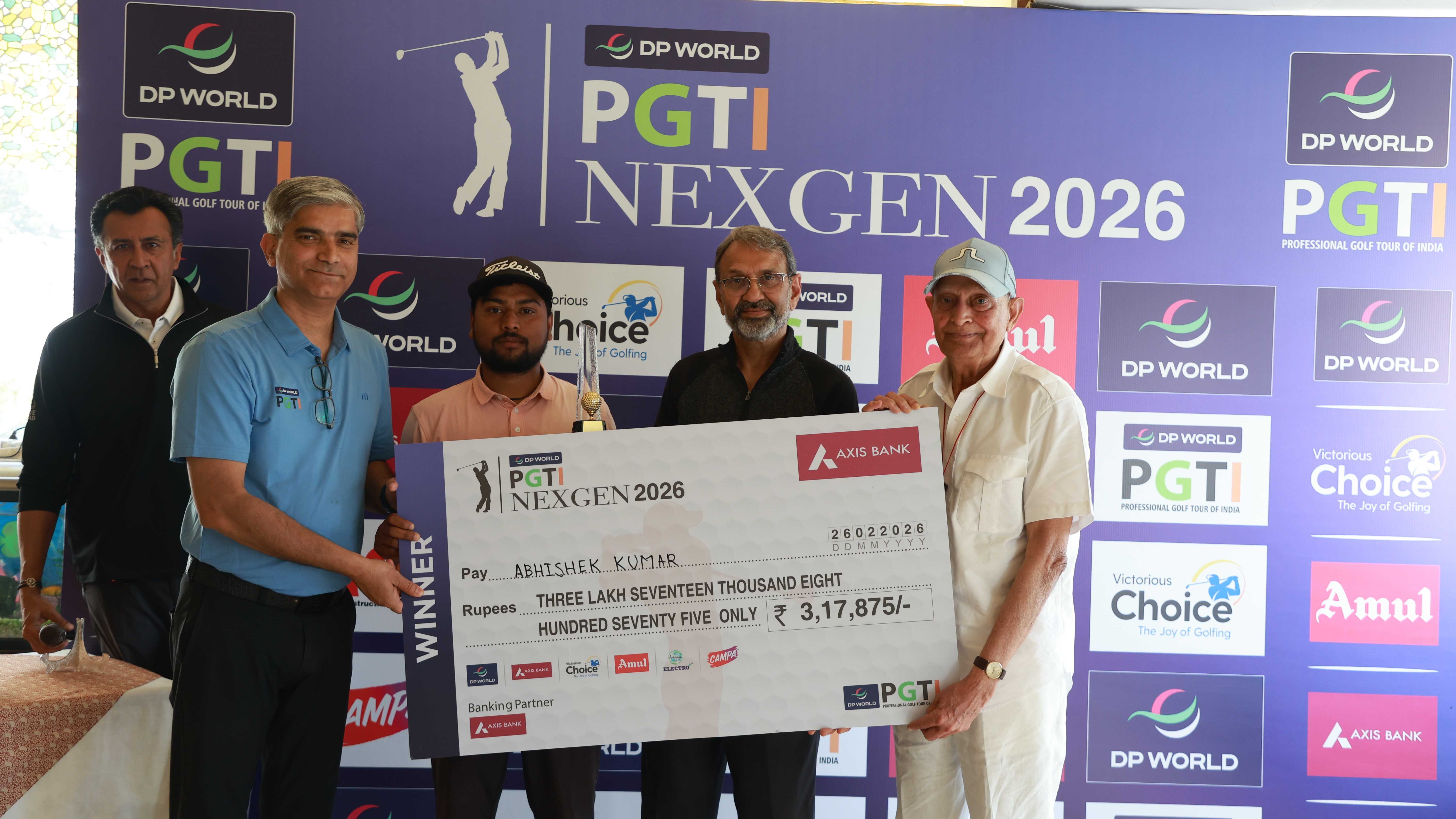 NexGen Faridabad 2026: Abhishek Kumar produced a tournament low score, a sublime bogey-free eight-under 64, in the third and final round, to register a sensational come-from-behind victory